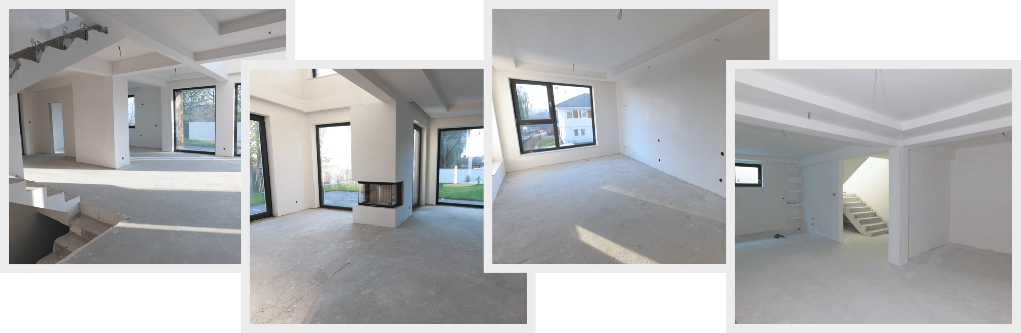 Fundația este izolată cu polistiren extrudat atât orizontal cât şi vertical, asigurând eficiență termică. Zidurile sunt realizate din cărămidă Porotherm Robust.