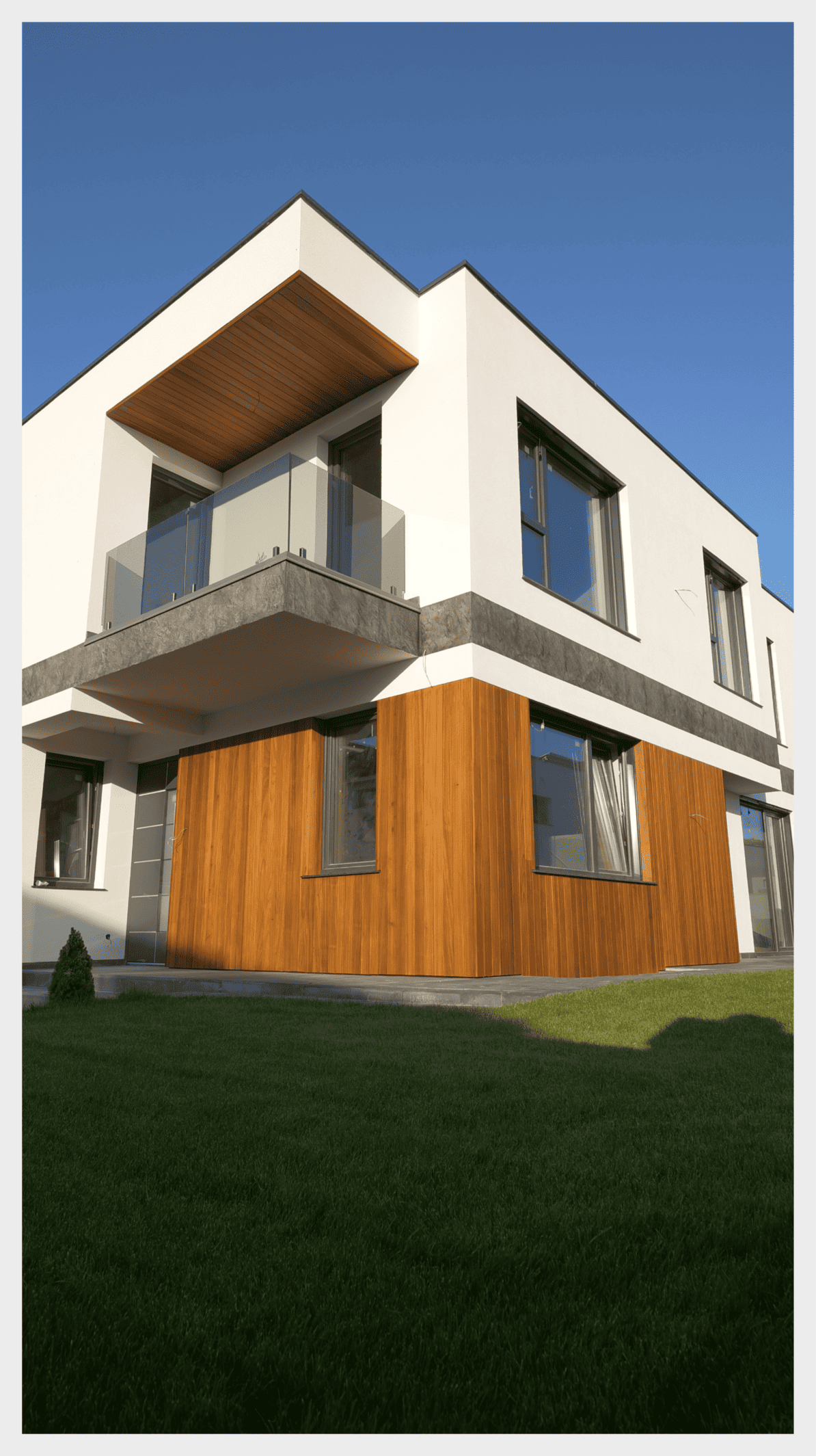 Amenajarea exterioară este complet finalizată cu finisaje de calitate, din lemn natural exotic și materiale de calitate Caparol și Sto, pentru un aspect elegant și durabil.